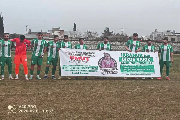 Maçın başlama düdüğü öncesi stadyumda duygu dolu anlar yaşandı. Ceyhan 1967 FK futbolcular, seremoniye "İKRANUR'a UMUT OLUYORUZ" yazılı dev bir pankartla çıktı. SMA Tip 1 hastası İkranur Ertaş’ın valilik onaylı yardım kampanyasına dikkat çekmek isteyen yeşil-beyazlı ekip, tribünleri ayağa kaldırdı. Ceyhan tek yürek olurken, mesaj netti: "İkranur yaşasın!"