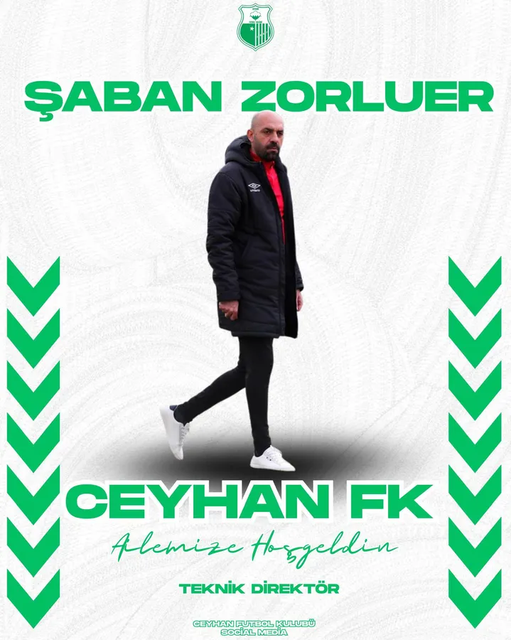 Bal Ligi'nde şampiyonluk mücadelesi veren temsilcimiz Ceyhan FK nin yeni teknik direktörü Kariyerinde 5 şampiyonluğu bulunan ( Adana Hadırlıgücü,Balıkesir Havran,Balıkesir Burhaniye,Adana Hadırlıgücü,Balıkesir Edremit ) deneyimli Teknik Direktör Şaban ZORLUER ile anlaşma sağladı