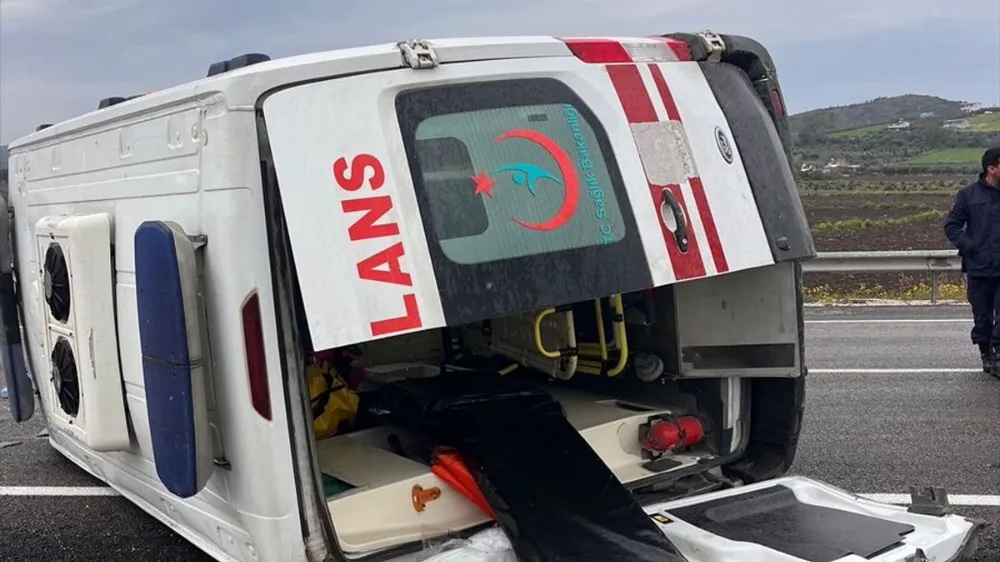Edinilen bilgiye göre lastiği patlayan ambulans, sürücünün kontrolünden çıkarak bariyere çarptıktan sonra devrildi. Kazanın ardından olay yerine sağlık ve itfaiye ekipleri sevk edildi.