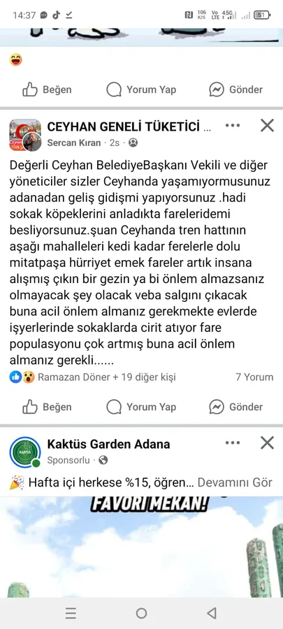 Son zamanlarda Ceyhan ilçesinde yaşanan sorunlara artık dayanamayan vatandaşlar isyan etti  sosyal medyada Ceyhanın saygın platformlarından birisi olan Ceyhan Geneli soru önerisi sayfasından Ceyhan Belediyesine çağrıda bulunan vatandaşlar sahipsiz Ceyhan için arayış içerisine girdiler. Hiçbir konuda hizmet alamadıklarını ifade eden Ceyhanlılar artık isyan etme derecesine geldi.Kaderine terk edilmiş  edişmiş  sahipsiz Ceyhan için bakın vatandaşlar ne yorum yapmış