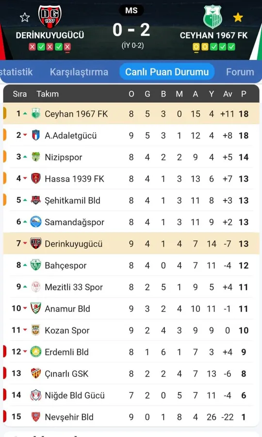 Bölgesel Amatör Lig 6. Grup’ta mücadele eden CEYHAN 1967 FK, Derinkuyugücü deplasmanında 2-0 galip gelerek taraftarların yüzünü güldürdü