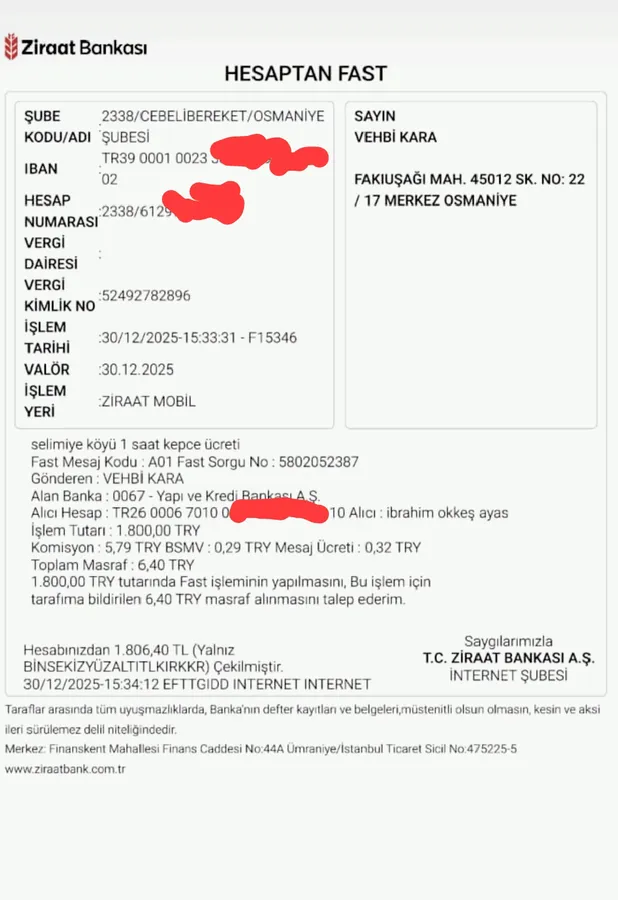 Ödeme kurumun resmi hesabına değil operatörün hesabina gelmiş.