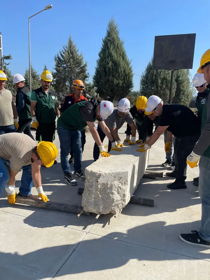 Eğitim süresince gönüllü personeler Enkazda arama kurtarma teknikleri,