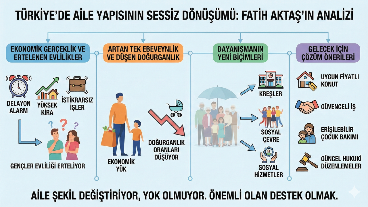 Aktaş’a göre bugün aile yapısında ortaya çıkan farklılaşma, yalnızca gençlerin tercihlerinin sonucu değil; Türkiye’nin içinden geçtiği ekonomik, kültürel ve sosyal koşulların doğal bir yansıması.