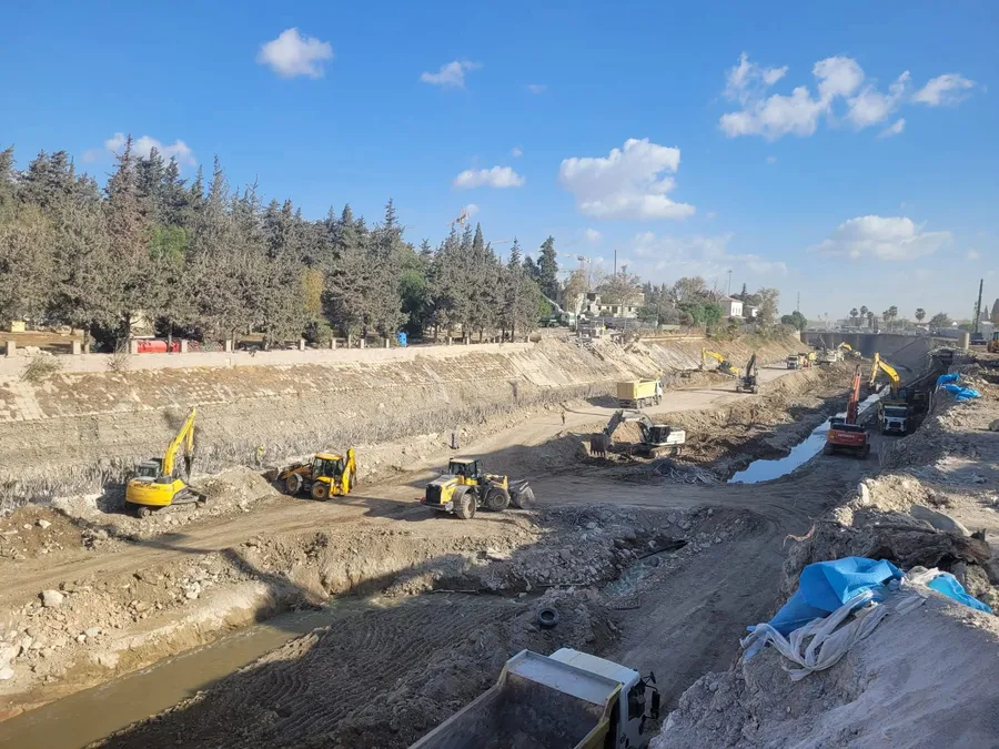 DSİ Taşkın Kontrol Dairesi Başkanı Muhammet Bahattin Avcıoğlu, Dsi 6.Bölge Müdürüm Celal Tokalak, Taşkın Kontrol Dairesi Başkan Yardımcısı Mesut Keleş, Şube Müdürü SAli Sercan Peker ve 63. (Hatay) Şube Müdürü Fatih Mıyman ile beraberlerindeki heyet, Hatay Asi Nehri Taşkın Koruma (Deprem Hasarları) işinde incelemelerde bulundu.