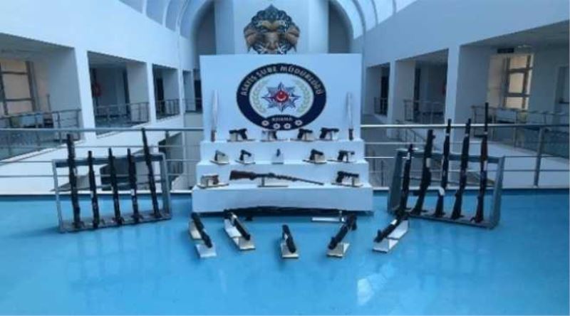 Yapilan aramalarda 24 ruhsatsiz tabanca, 18 ruhsatsiz tüfek, 6 kuru siki tabanca ile bu silahlara ait çok sayida mermi, 750 gram altin bilezik, 2 pala tabir edilen biçak, 1 çalinti otomobil ve 25 çalinti motosiklet ele geçirildi. Yasa disi kumar ve bahis oynattigi öne sürülen 10 is yerine de idari islem baslatildi.