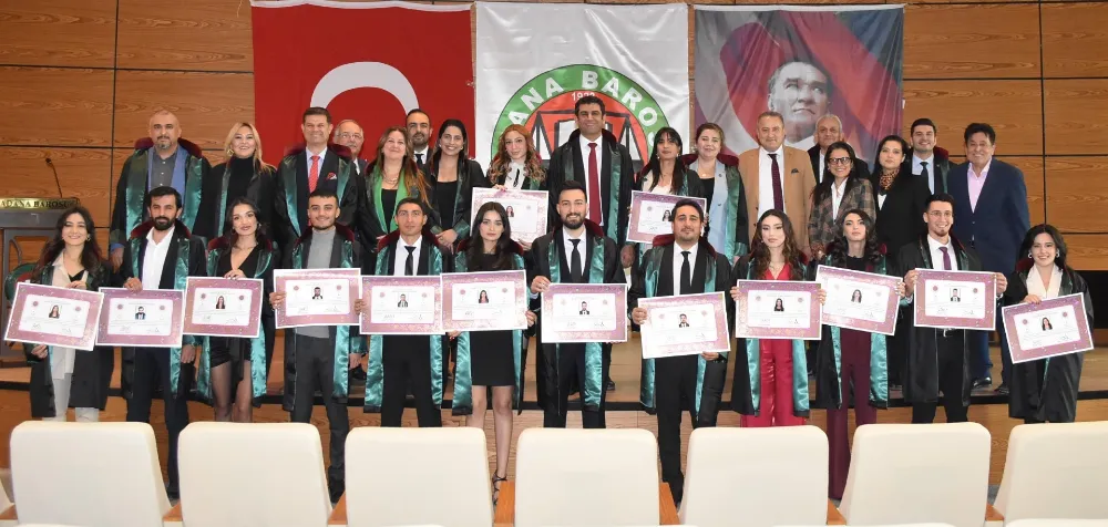 Adana Barosu’nda staj dönemlerini başarıyla tamamlayan 14 stajyer avukata ruhsatları törenle takdim edildi. Adana Adliyesi Konferans Salonu’nda geniş katılımla yapılan törende, Adana Barosu Başkanı Av. Semih Gökayaz, meslektaşlarına toplu yemin ettirdikten sonra bir konuşma yaptı.