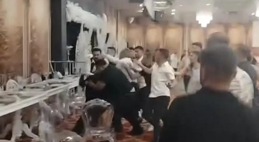 Öte yandan iki grubun düğün salonundaki kavgası, cep telefonu kamerasıyla kaydedildi. Polis, kavgaya karışan çok sayıda kişiyi gözaltına aldı.
