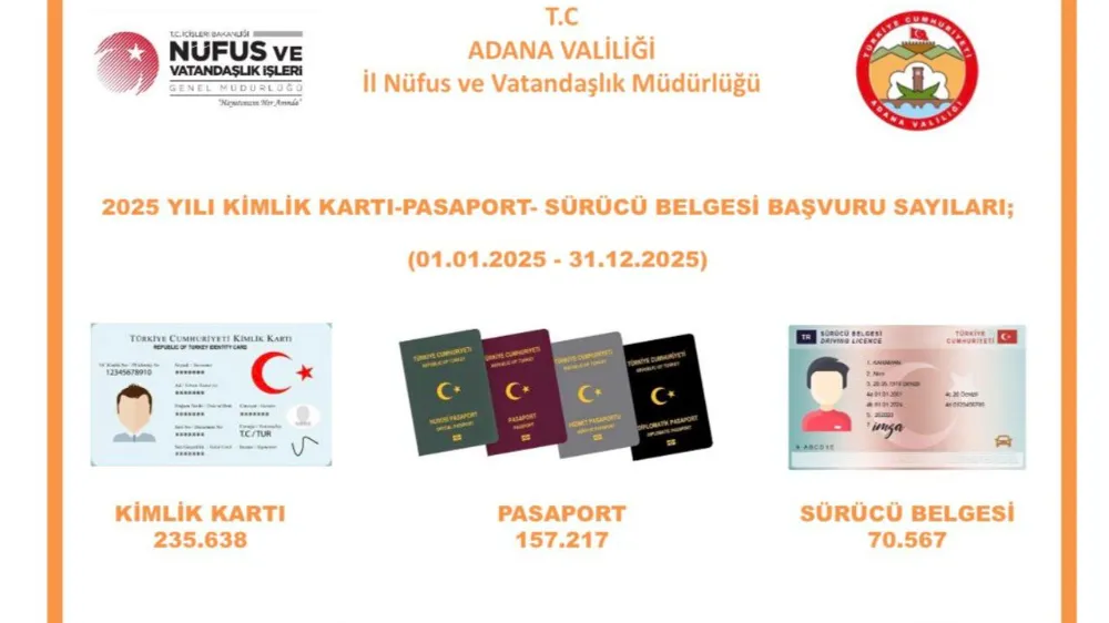 1 Ocak 2025 – 31 Aralık 2025 tarihlerini kapsayan verilere göre, Adana’da nüfus müdürlüklerine yapılan başvurular dikkat çekici seviyelere ulaştı.