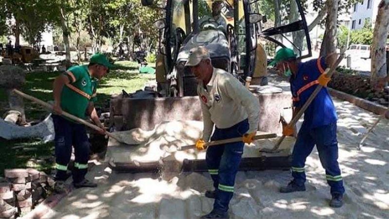 Park ve Bahçeler Müdürlügü ekipleri, ilçe genelindeki parklarda ve yesil alanlarda bakim, mintika ve çevre düzenleme çalismalarina devam ediyor