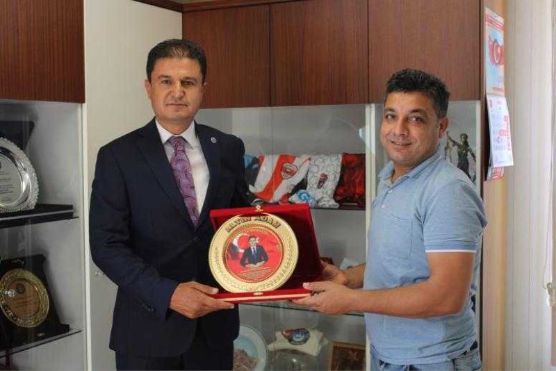 Türk Egitim Sen Genel Baskan Yardimcisi Selahattin Dolgun’u makaminda ziyaret eden Gazetemizin imtiyaz sahibi Osman Yavuz ve Öztürk Hayat Gazetesi imtiyaz sahibi Aytekin Denizli, Sendikal faaliyetlerde basarili olan Baskan Dolgun’a plaket verdi.