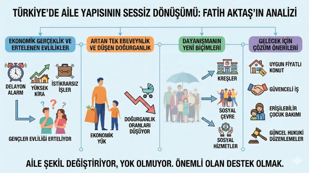 Aktaş’a göre bugün aile yapısında ortaya çıkan farklılaşma, yalnızca gençlerin tercihlerinin sonucu değil; Türkiye’nin içinden geçtiği ekonomik, kültürel ve sosyal koşulların doğal bir yansıması.