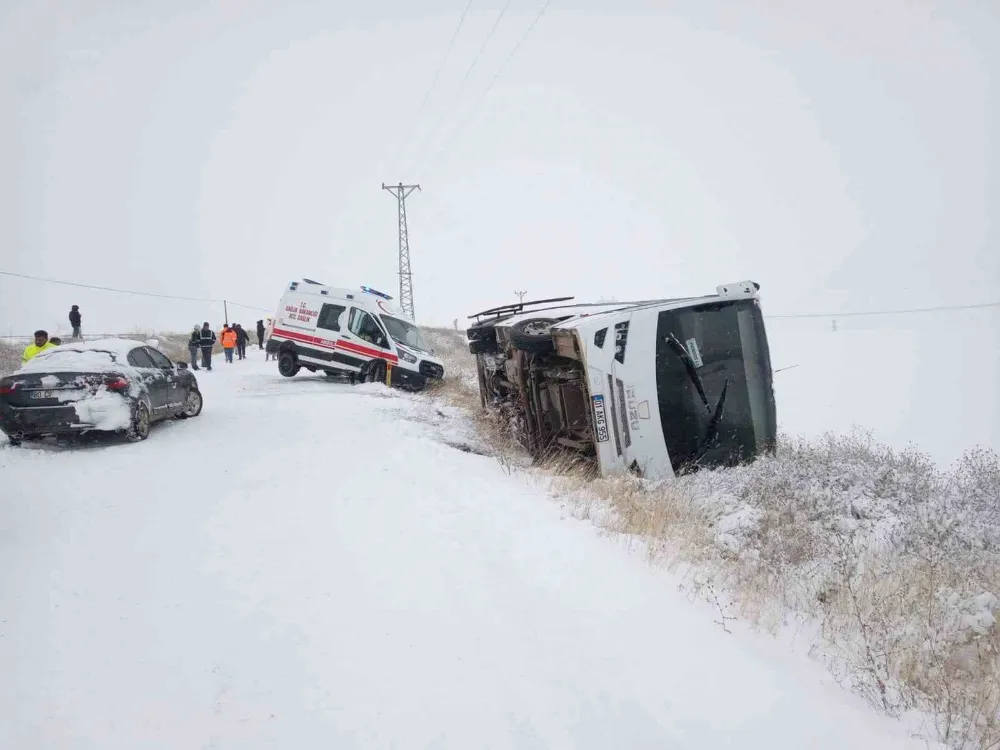 Adana’nın yüksek bölgelerinde etkili olan kar yağışı, ulaşımda aksamalara ve kazalara neden oldu. Tufanbeyli ilçesinde O.Ü. idaresindeki 01 AKG 955 plakalı servis minibüsü kar yağışı nedeniyle kayarak şarampole devrildi. Araçta bulunan 5 işçi kazayı yara almadan atlattı. Tedbir amaçlı bölgeye sevk edilen sağlık ekiplerinin olduğu ambulans da şarampole girerek kara saplandı.
