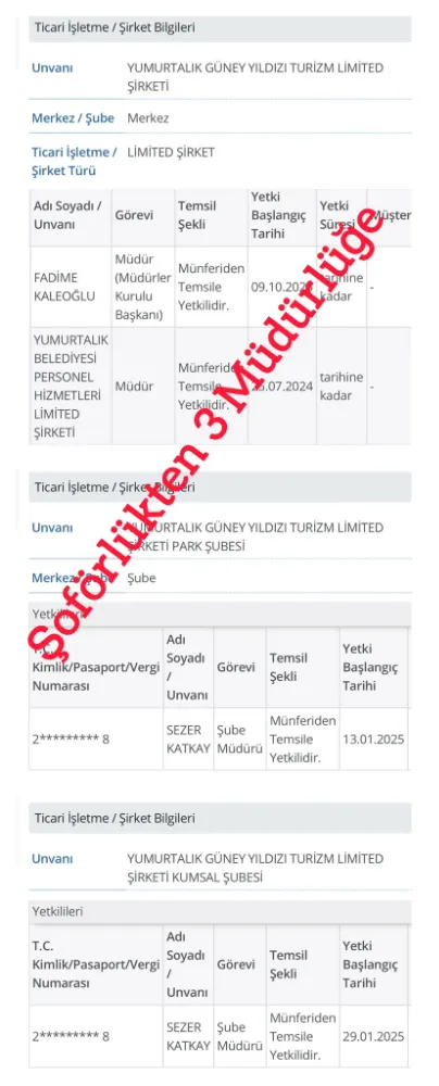 Son zamanlarda kendi ile ilgili çıkan haberlerden dolayı , köşeye sıkışan her taşın altından çıkan Yumurtalık Belediyesinin altın ismi Sezer Katkay, Belediye ye ait Yumurtalık Güney Yıldızı Turizm Limited ŞTİ.nin Müdürlüğüne Fadime Kaleoğlu’nu getirterek, kendisini burda saf dışı bıraktığı görülüyor.