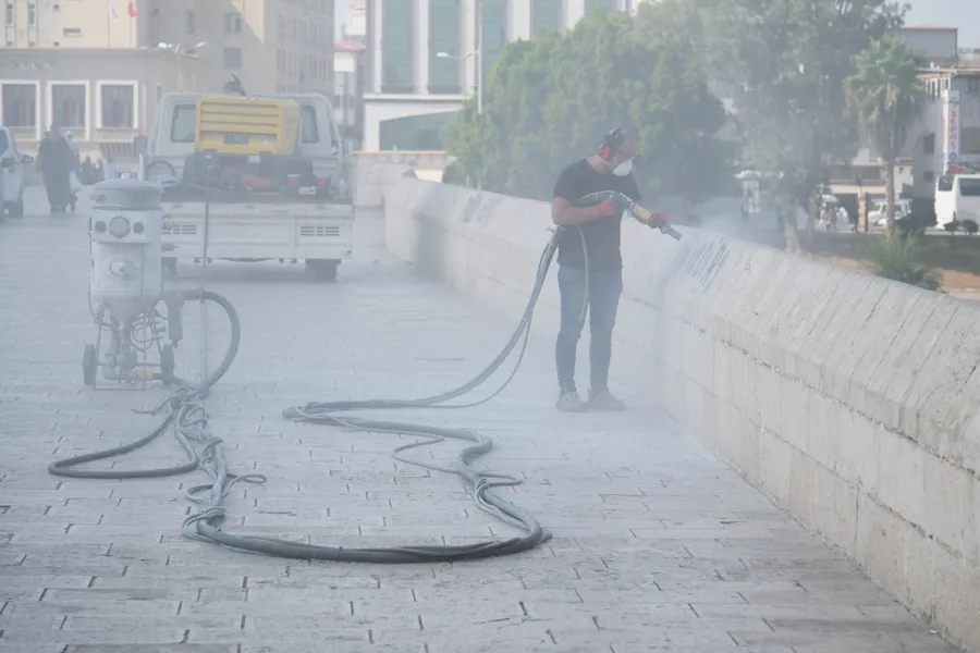 Adana’nın ve dünyanın önemli tarihi miraslarından Taşköprü’de temizlik çalışması gerçekleştirildi. Sprey boya ve çeşitli maddelerle köprü üzerine yazılan yazılar, Adana Büyükşehir Belediyesi Koruma Uygulama ve Denetim Şube Müdürlüğü’nün (KUDEB) uzman ekiplerince temizlendi.