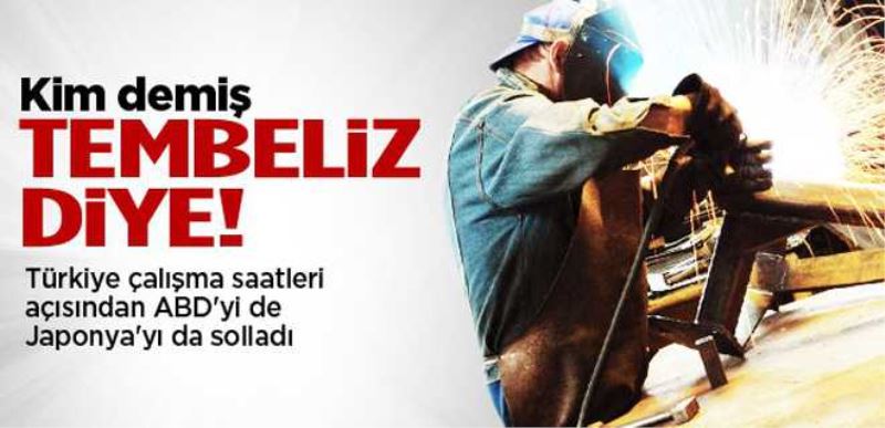 OECD'nin, çevre, ekonomi ve sosyal alanlara iliskin istatistiklerin yer aldigi ''Factbook 2013'' baslikli çalismasinda 2011 yili verileri kullanilarak üye ülkelerde çalisma saatleri karsilastirildi.Çalismaya göre, kisilerin zamanlarinin ne kadarini çalismaya harcadiklari, ne kadarini ailelerine ve kendilerine ayirdiklari yasam kalitesi açisindan büyük önem tasiyor.Yillik ortalama çalisma süresi, yil boyunca çalisilan toplam saatin, istihdamdaki ortalama kisi sayisina bölünmesiyle bulunuyor. Veriler, part-time ve tam zamanli çalisanlar dahil olmak üzere kendi isinde veya bir is yerinde çalisanlari kapsiyor. OECD çalismasinda, kisilerin çalisma sürelerinin azalmasi ayni zamanda ülkedeki verimlilik artisinin kisilerce paylasilmasi olarak degerlendiriliyor. Çalismada, son dönemde bazi OECD ülkelerinde hükümetlerin, ebeveynlerin is ve aile yasantilari arasinda bir denge kurabilmelerini kolaylastirmak için çesitli politikalar uyguladiklari ve bu politikalar arasinda çalisma saatlerinin azaltilmasinin da yer aldigi belirtiliyor.ÇALISMA SAATLERI AZALDIÇalismaya göre; OECD ülkelerinin çogunlugunda, 2000-2011 yillari arasinda kisi basina ortalama çalisma saatleri azaldi.Avustralya, Avusturya, Sili, Çek Cumhuriyeti, Yunanistan, Izlanda, Irlanda, Italya, Japonya ve Lüksemburg'da bu dönemde ortalama çalisma süresinde 80 saat ve üzerinde düsüs yasandi. En fazla düsüs yasanan ülke 216 saatle Sili oldu. Az da olsa çalisma saatinin arttigi ülkeler Belçika ve Isveç oldu.Yillik ortalama çalisma saati açisindan tüm OECD ülkeleri ortalamasi 2000 yilinda bin 844 iken, 2011 yilinda bin 776 saate geriledi. Bu gerileme, 40 saatlik haftalik çalisma süresi dikkate alindiginda, 1.5 saatlik bir düsüse denk geliyor.2011 yilinda OECD ülkeleri arasinda yillik ortalama çalisma süresinin en fazla oldugu ülke adi siestayla anilan Meksika oldu. Meksika'da çalisanlar yilda ortalama 2 bin 250 saat görev yapti. Meksika'yi 2 bin 47 saatle Sili, 2 bin 32 saatle Yunanistan izledi.EN AZ ÇALISAN HOLLANDAYillik ortalama çalisma süresinin en az oldugu ülke ise Hollanda. Hollanda'da çalisanlar yilda bin 379 saati iste geçiriyor. Hollanda'nin ardindan bin 413 saatle Almanya, bin 426 saatle Norveç geliyor.TÜRKIYE, ALMANYA VE FRANSA'DAN UZAK ARA ÖNDEOECD ortalamasinin bin 844 saat oldugu 2000 yilinda Türkiye'de bir çalisan, bin 937 saatini çalisarak geçirdi. Yani Türkiye'deki çalisanlar, OECD ortalamasindan 93 saat daha fazla çalisti.OECD ortalamasinin bin 776 saate geriledigi 2011'e gelindiginde ise Türkiye'de de bir çalisanin iste geçirdigi süre ortalama bin 877 saate indi. Türkiye'de çalisanlarin fazladan çalistigi süre OECD ortalamasina göre 101 saate çikti.Türkiye'de, Almanya'dan yilda 464, Fransa'dan 401, Ingiltere'den 252, Ispanya'dan 187, Japonya'dan 149, Italya'dan 103, ABD'den 90 saat fazla çalisiliyor