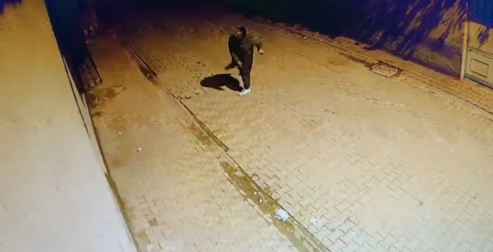 Gürültüyü fark eden ev sahibi Mustafa B., pencereye çıkarak duruma tepki gösterdi. Bunun üzerine Muhammet Y.'nin, Mustafa B.'ye de taş atmaya çalıştığı ve ardından olay yerinden kaçtığı öne sürüldü. Yaşananlar çevredeki bir iş yerinin güvenlik kamerasına saniye saniye yansıdı.
