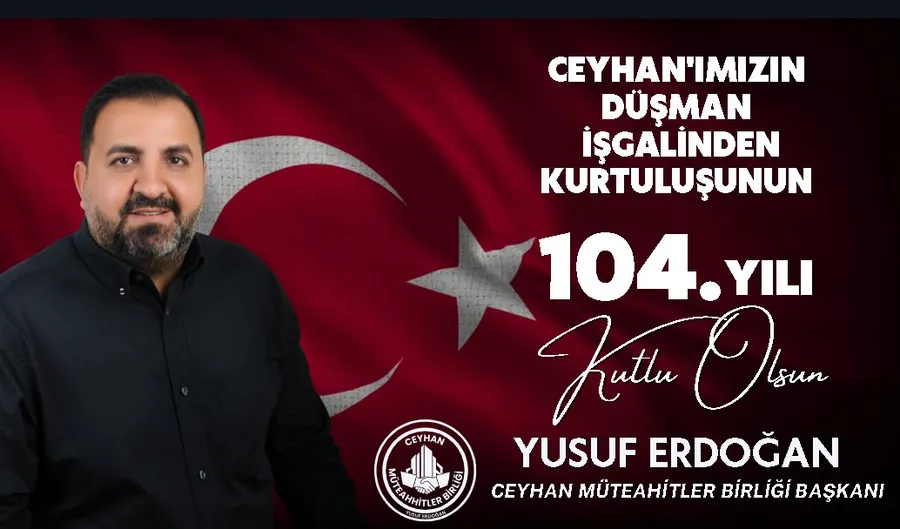 Ceyhan Müteahhitler Birliği Yönetim Kurulu Başkanı Yusuf Erdoğan, Ceyhan’ın düşman işgalinden kurtuluşunun 104. yıl dönümü dolayısıyla bir kutlama mesajı yayımladı.